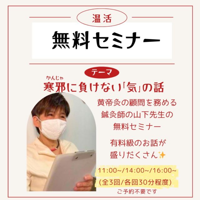 🔸鍼灸師 山下先生の【無料セミナー】も開催👩🏫