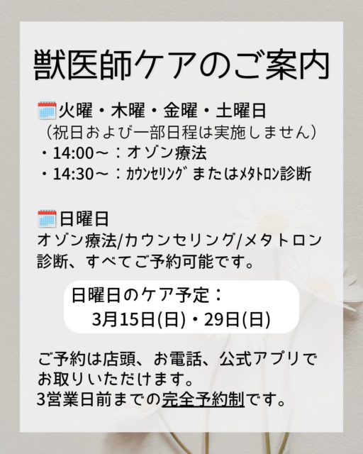 【獣医師ケア】3月開催日のおしらせ