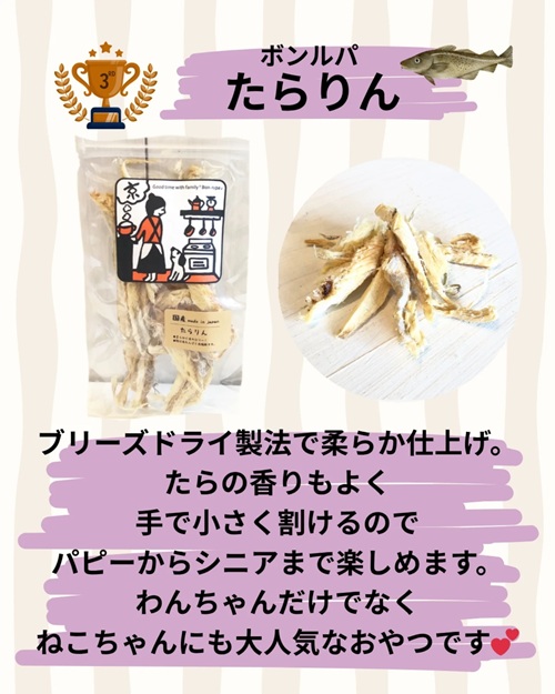 フリーズドライ製法で柔らかく仕上げた、タラの香りの良いおやつ🐟