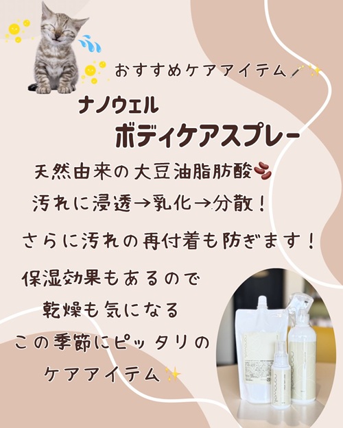 お散歩前に、体全体へシュシュッとスプレーしておくだけで、お散歩後のケアが楽になります🐾
