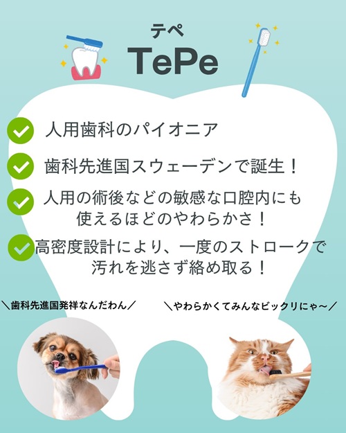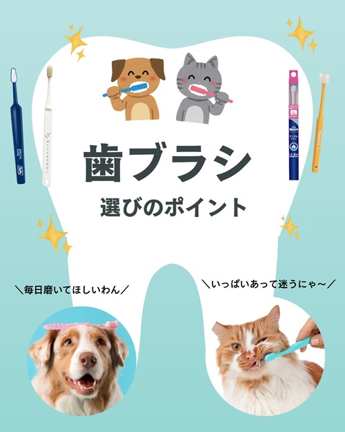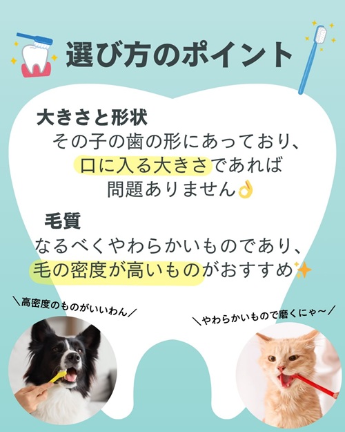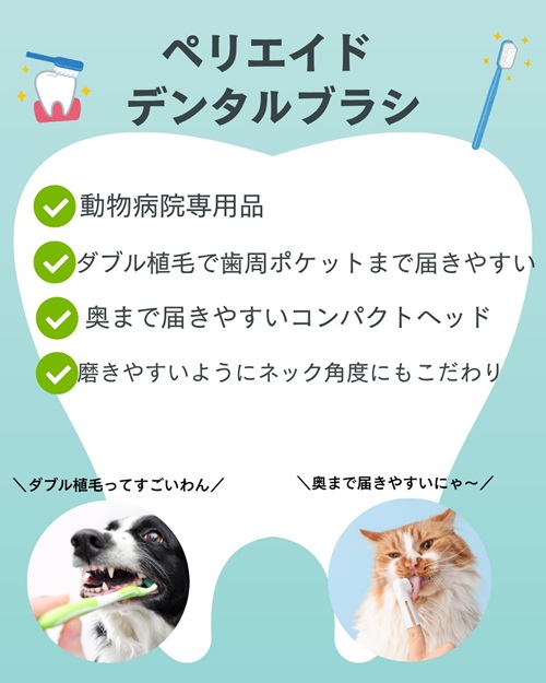 子供用歯ブラシがいけない訳ではありませんが、動物用に比べ毛が硬く密度が低いものが多く、力加減や磨き方を間違えると口腔内を傷つけ、歯磨きが嫌いになる原因となるので、十分に気をつけてご使用くださいね🥺