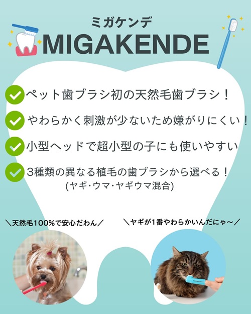 ・植毛数は通常の歯ブラシの5~10倍で、柔らかく刺激が少ないため、ペットが嫌がりにくい!